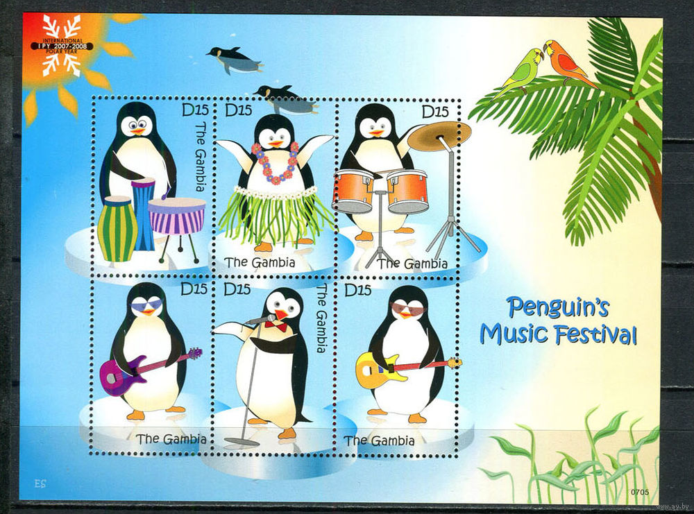 Гамбия - 2007 - Музыкальный фестиваль. Пингвины - малый лист - [Mi. 5744-5749kb] - полная серия - 6 марок. MNH. (Лот 76HU)-TG3P27