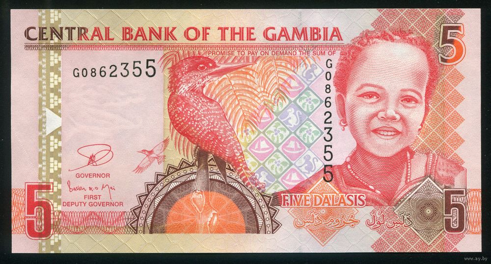 Гамбия 5 даласи 2013 г. P25c. Серия G. UNC