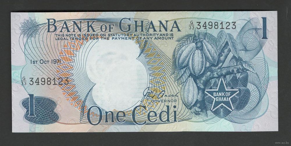 Гана 1 седи 1971 года. Тип P-10d. Состояние UNC