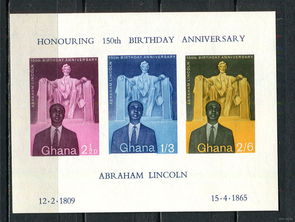 Гана - 1959 - 150 лет со дня рождения Авраама Линкольна. Президент Кваме Нкрума - [Mi. bl. 1] - 1 блок. MNH. (Лот 38JK)-TG2P45