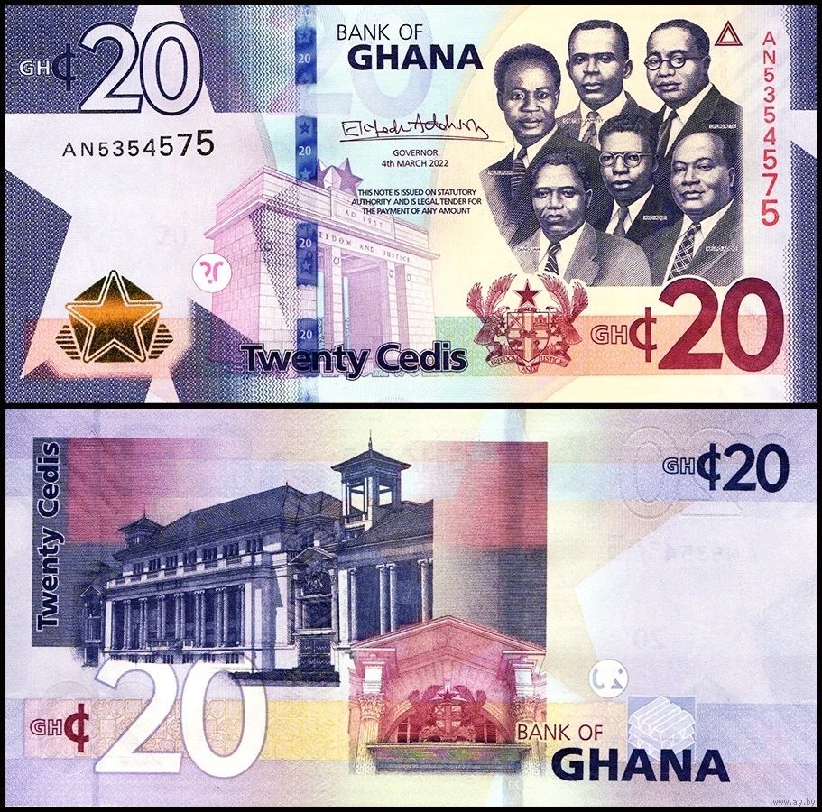 Гана 20 седи образца 2022 года UNC pw48 серия АА