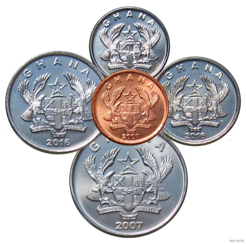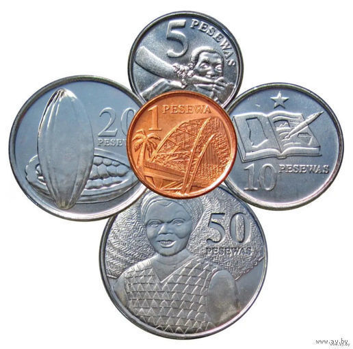 Гана набор монет 1, 5, 10, 20, 50 песева, UNC. Сторгуй за свою цену, предложи обмен!