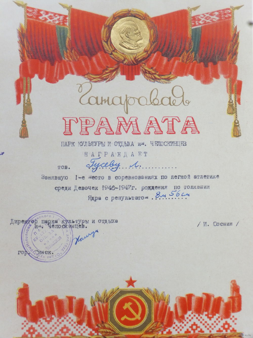 Ганаровая грамата парк Челюскинцев Минск 1960-е