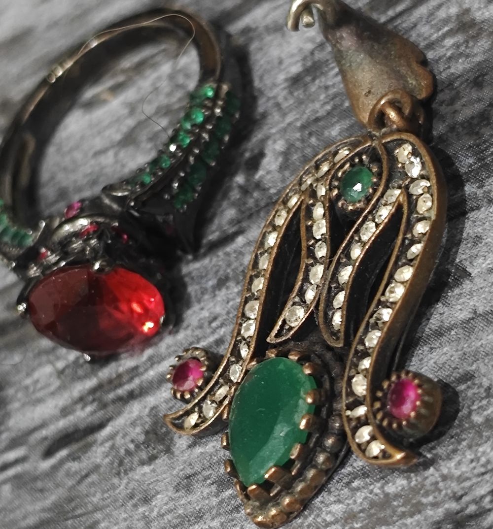 Красные камни драгоценные. На зеленых анализатор - нет результата
