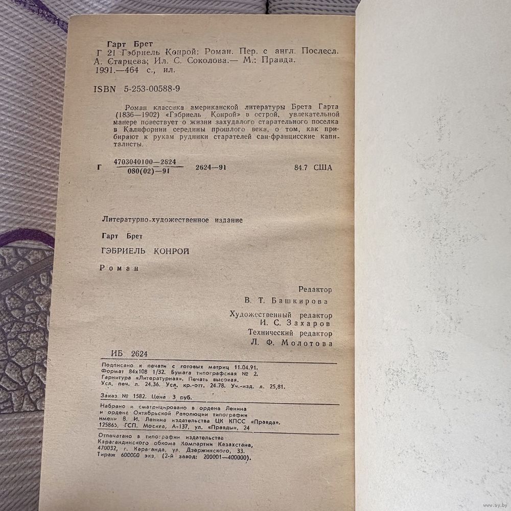 Роман классика американской литературы Брета Гарта (1836-1902) "Гэбриель Конрой" в острой, увлекательной манере повествует о жизни захудалого старательного поселка в Калифорнии середины XIX века, о том, как прибирают к рукам рудники старателей сан-францисские капиталисты.