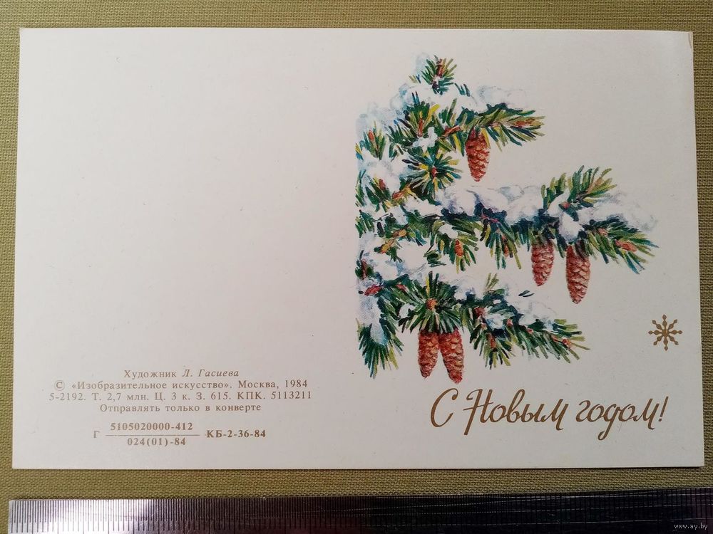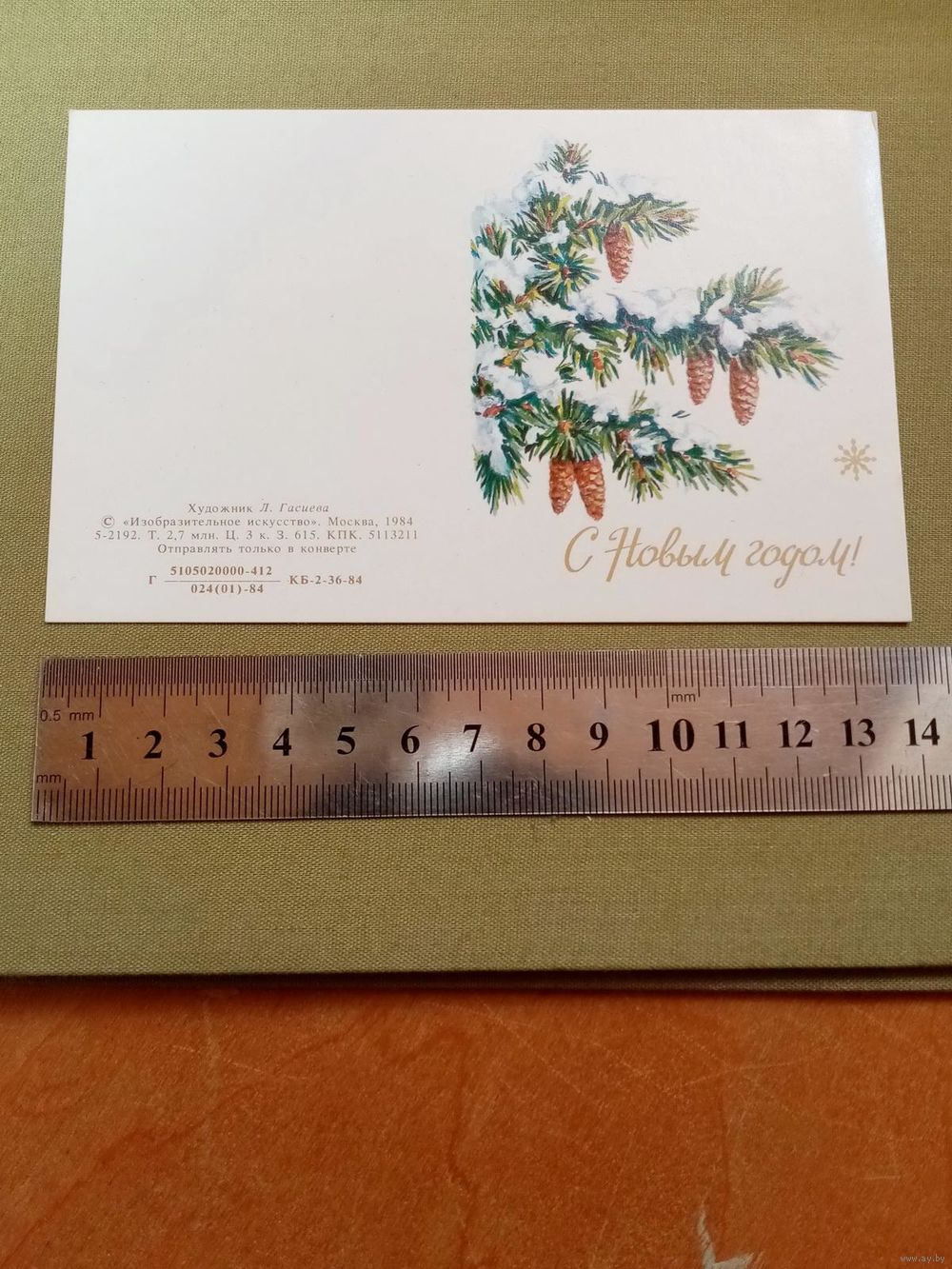 Гасиева 1984 мини открытка С Новым Годом! чистая не сложенная