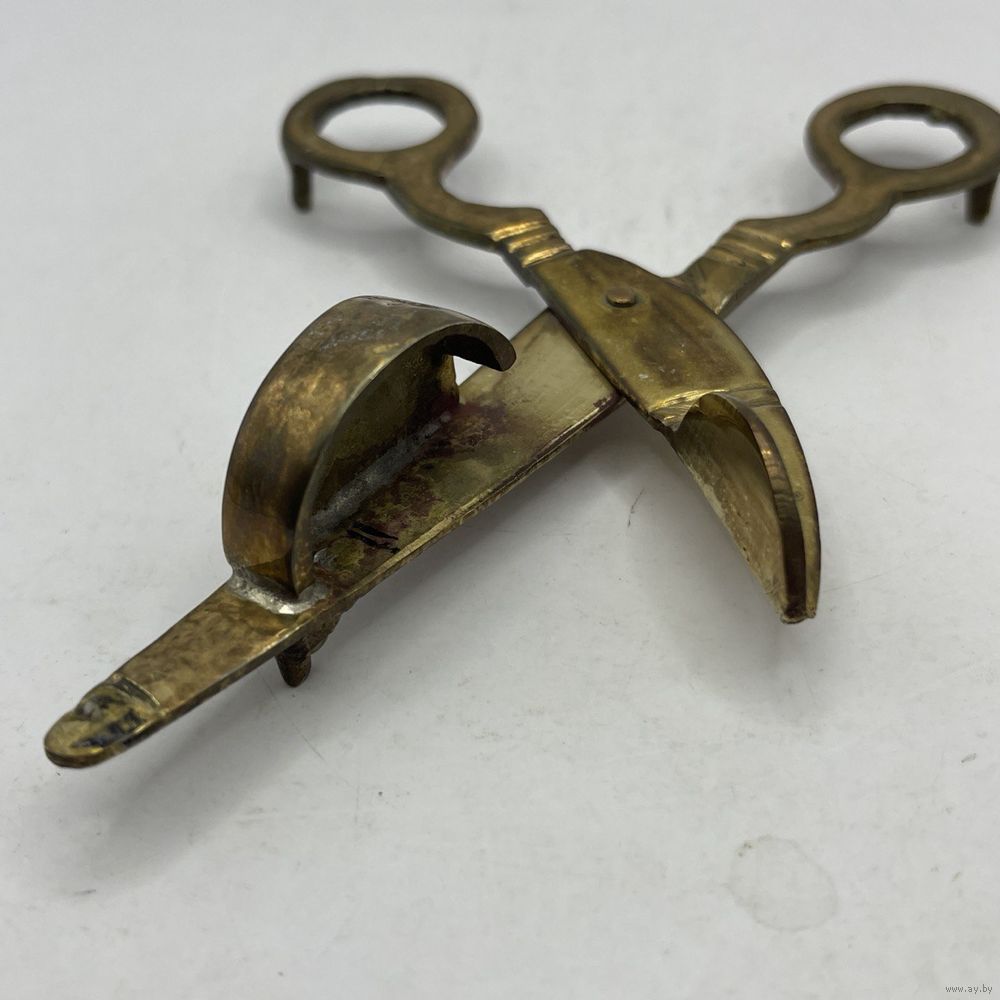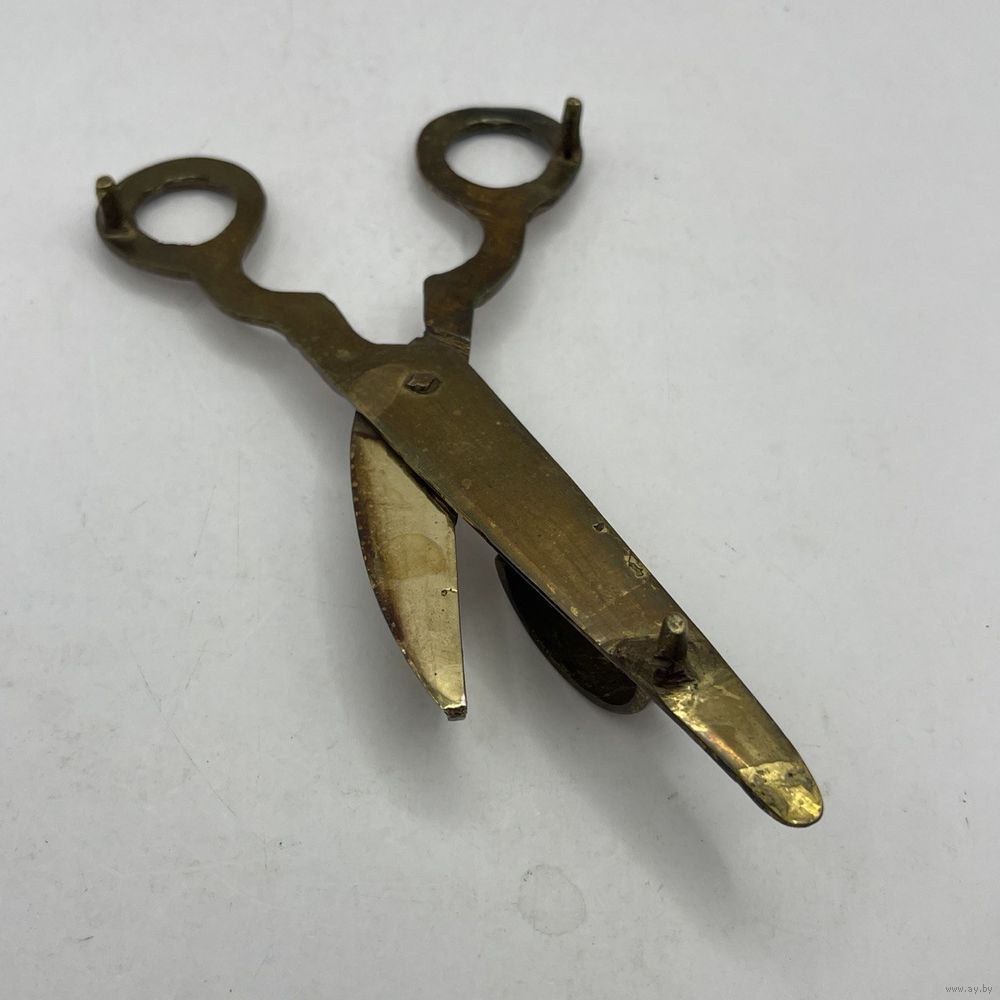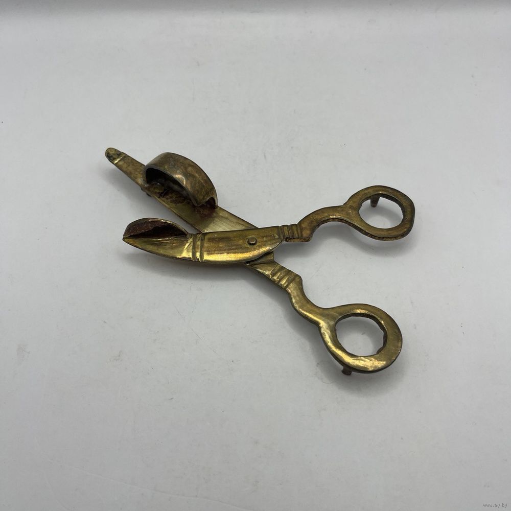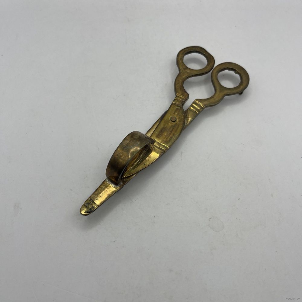 Антикварный латунный гасильник (гаситель) для свечей в виде ножниц. Германия. 1930-е г.г. Ручная работа. Длина 16,5 см. Естественная патина.