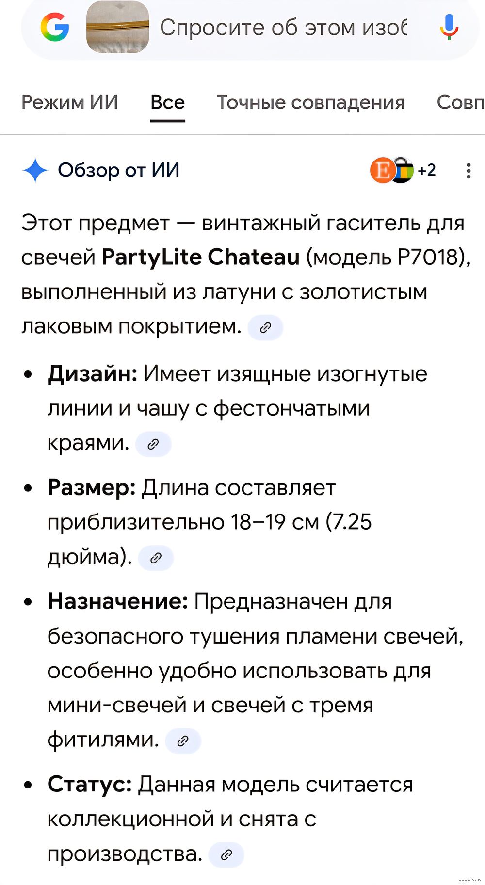 Гаситель для свечей Partylite Chateau / Вечеринка в замке Великобритания ХХ век, латунь 18 см.