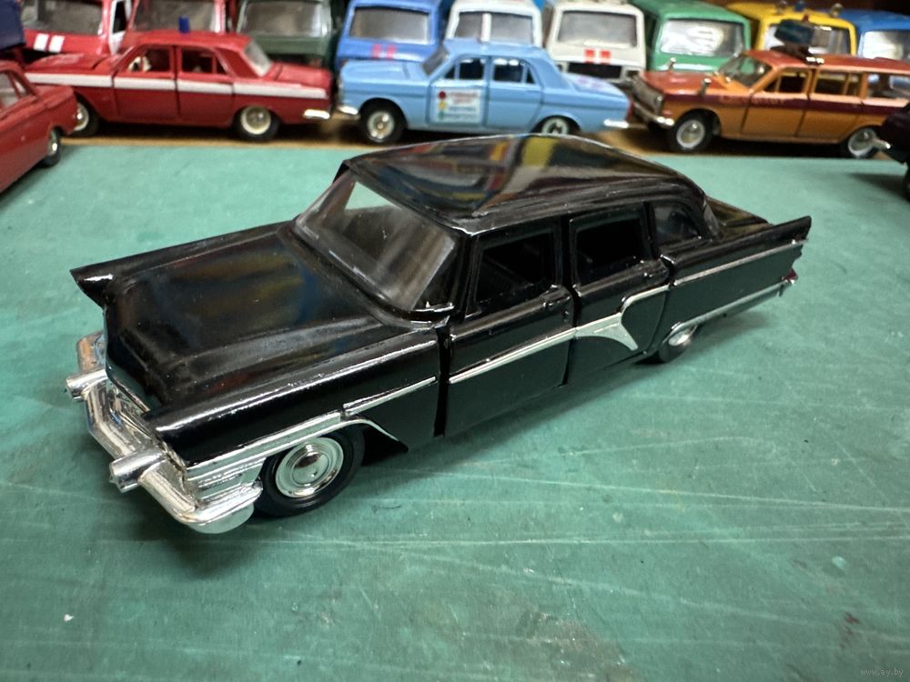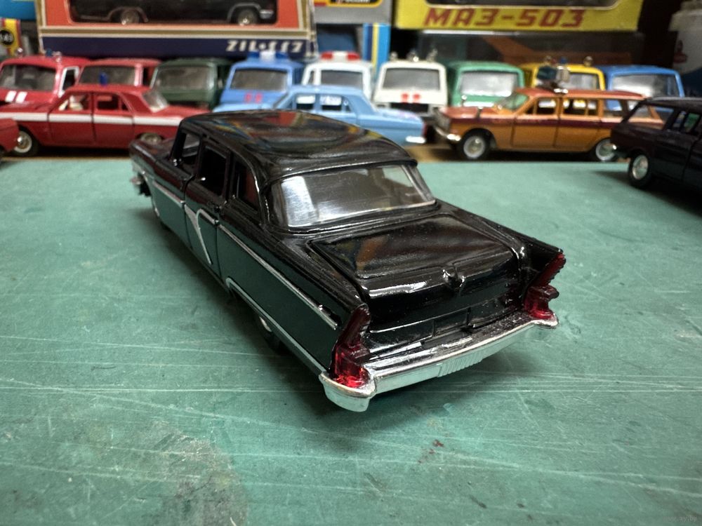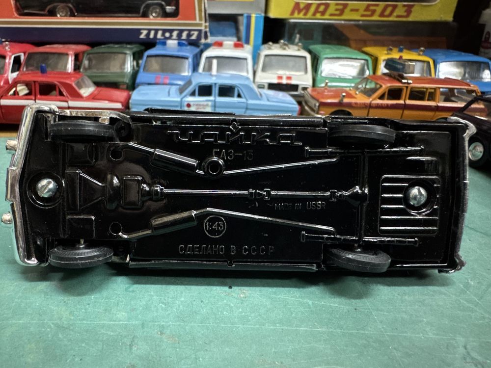 ГАЗ-13 Чайка, крайне редкая поздняя версия с черным салоном, глухим задним номером и отверстием на днище под крепление на подиум, Тантал, Агат, Саратов. Последнее фото дано для сравнения дна с обычной Чайкой. Распродажа коллекции. Смотрите и другие мои модели.