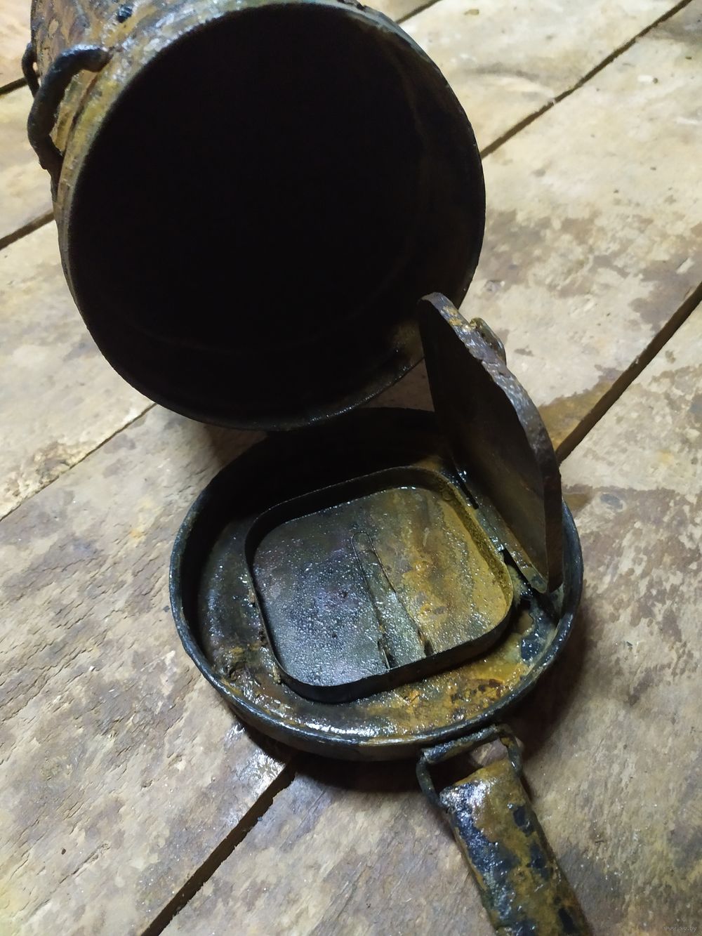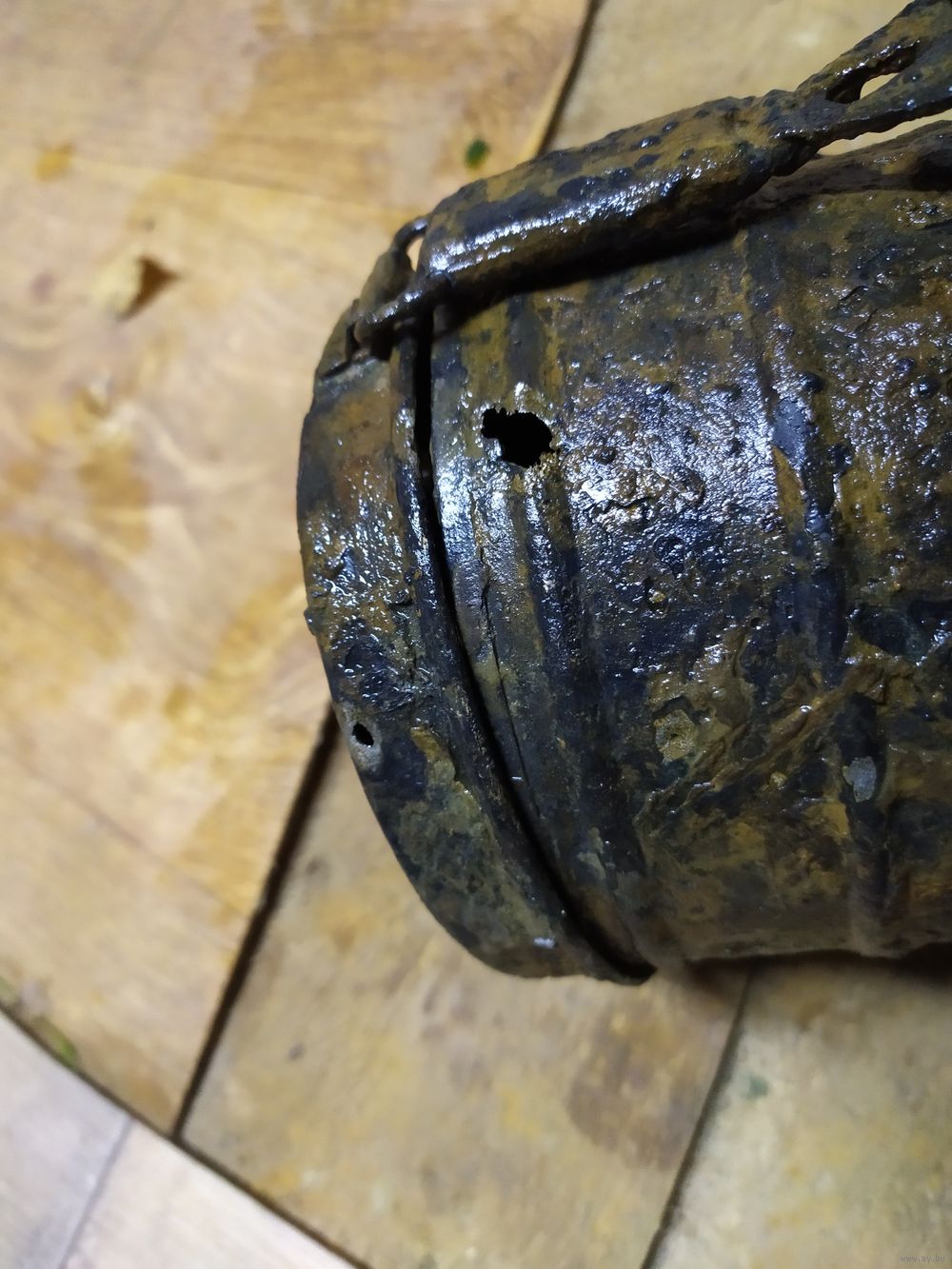 Помыт водой. Не чищен. Есть несколько небольших свищей (видно на фото). Металл крепкий. Фурнитура рабочая.