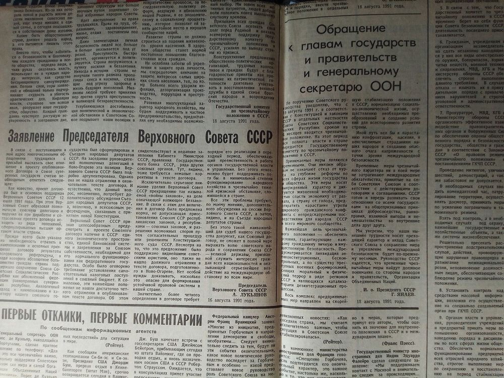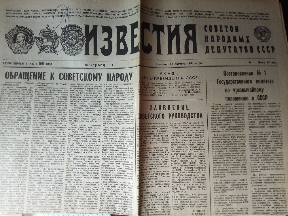 "Известия" от 20 августа 1991 г. Полный экземпляр. Все обращения, заявления, постановления и указы ГКЧП. Кто они? Путчисты или герои, пытавшиеся спасти страну!