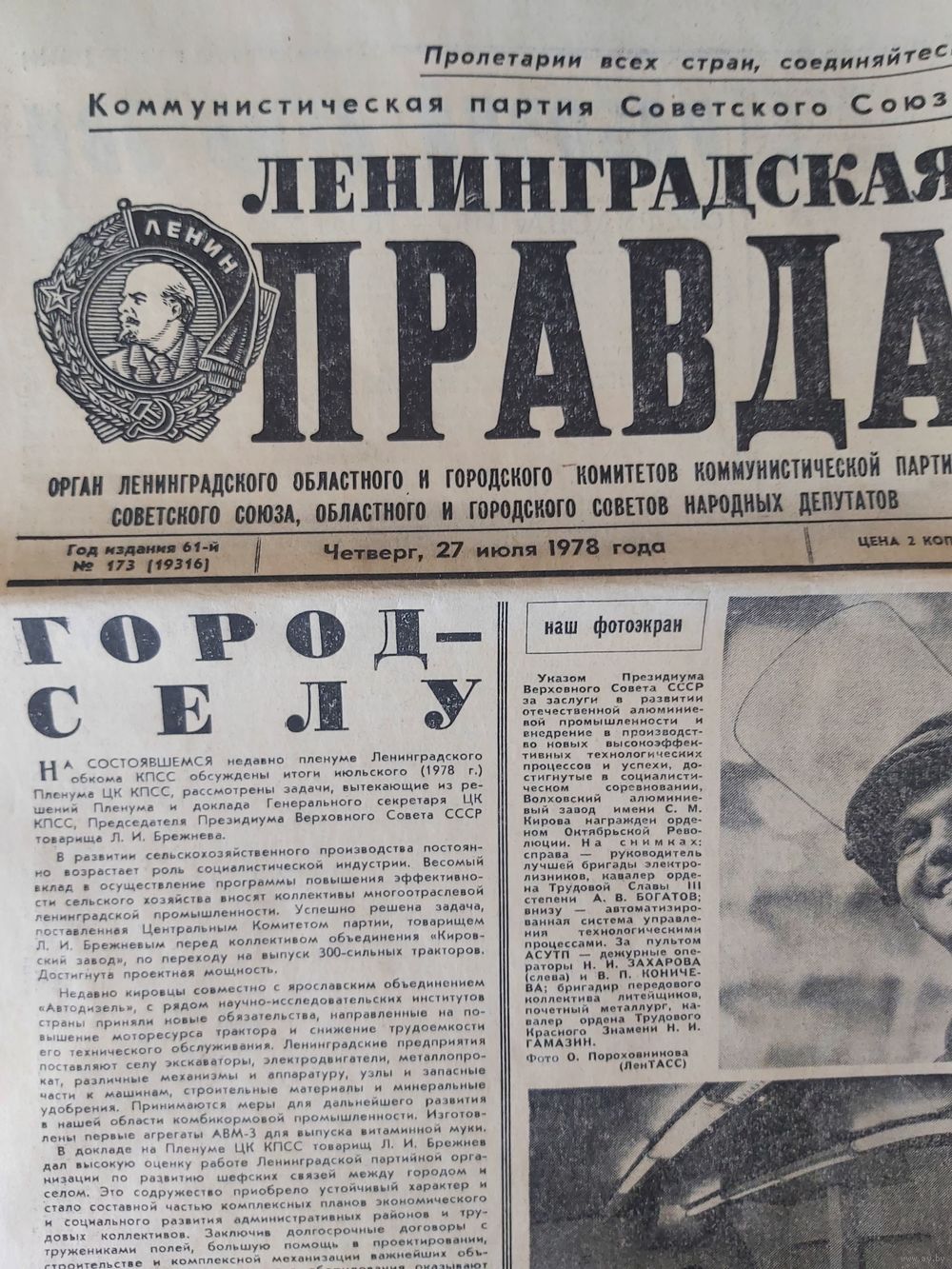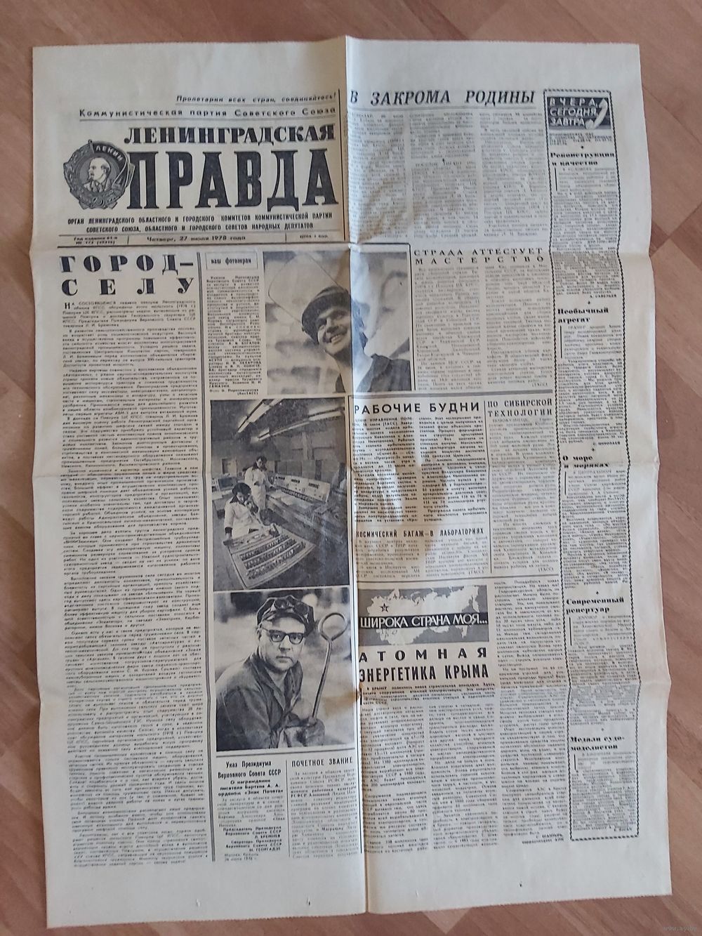 Газета “Ленинградская правда” за 27.07.1978г.