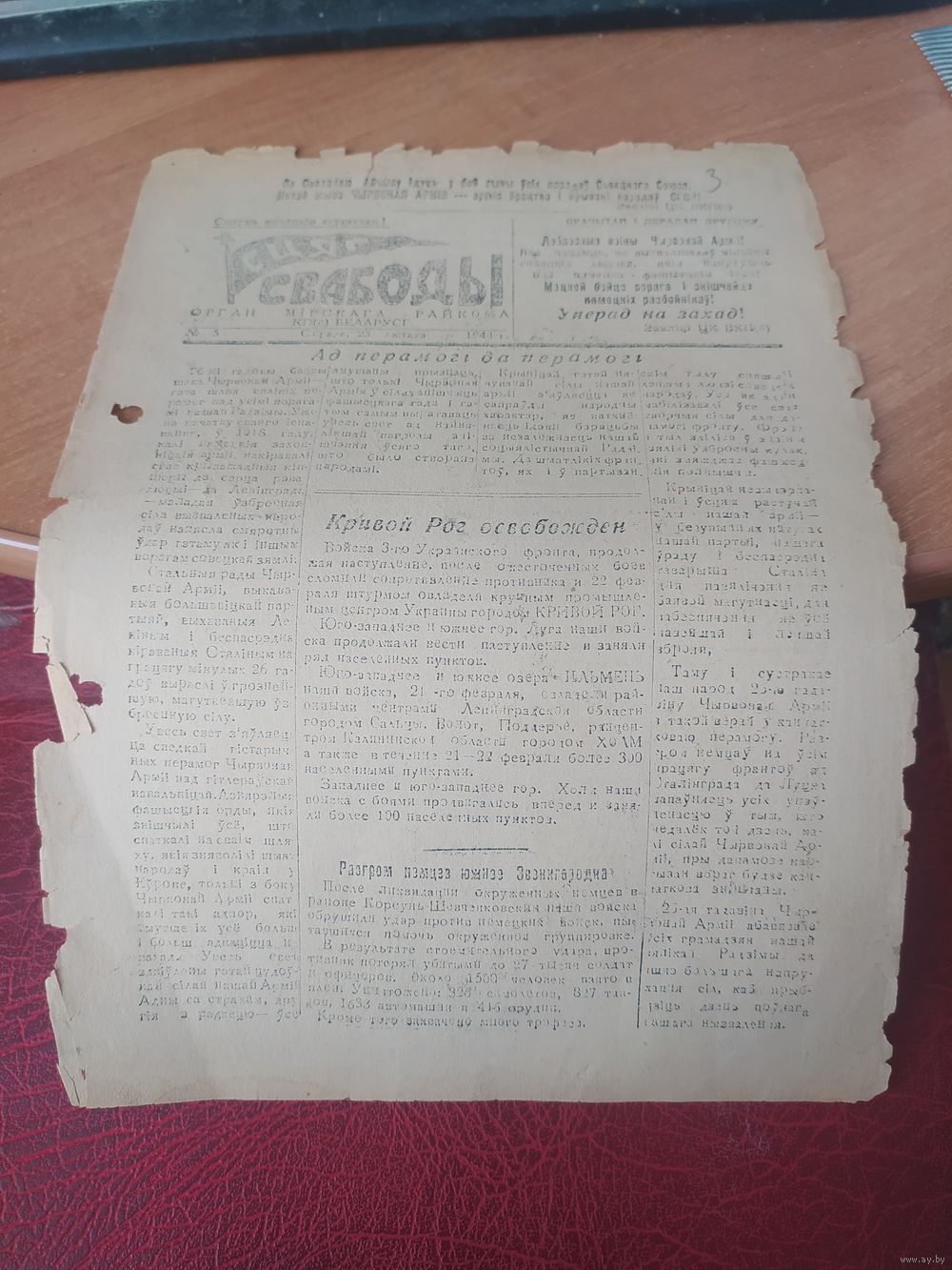 Газета -плакат Сцяг Свабоды номер 5. Мирский райком КПБ
