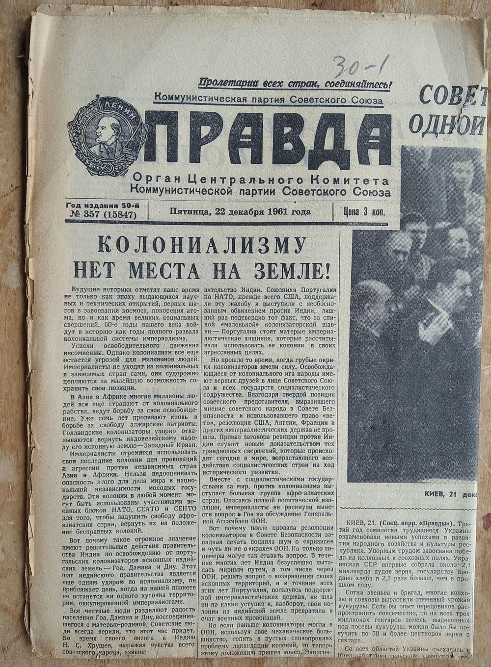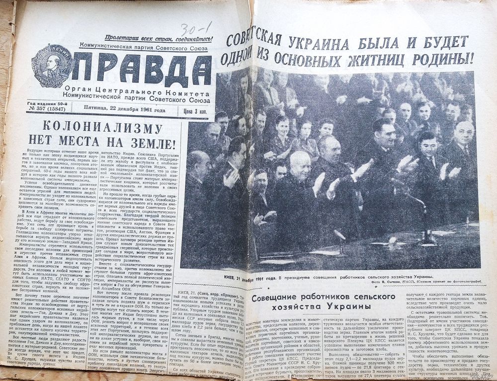 Газета Правда 22 декабря 1961 г. Фото Хрущева Н.С..