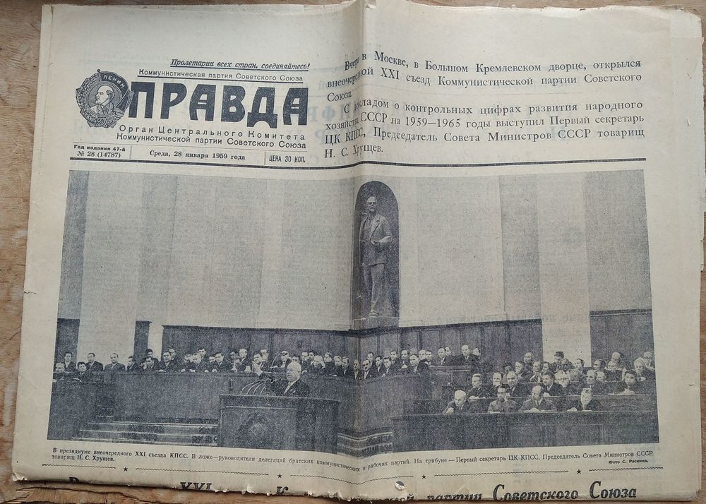Газета Правда 28 января 1959 г. Открытие ХХI съезда КПСС.