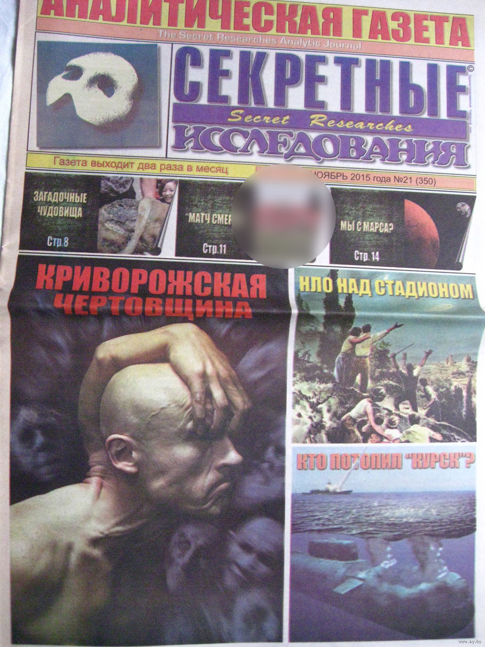 Газета Секретные исследования Номер 21 (350) Ноябрь 2015