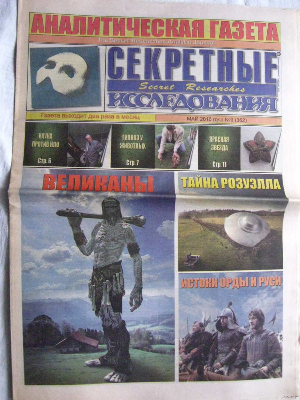Газета Секретные исследования Номер 9 (362) Май 2016