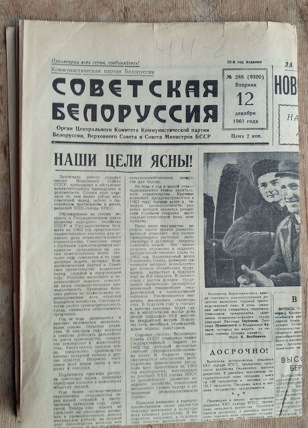 Газета Советская Белоруссия. 12 декабря 1961 г