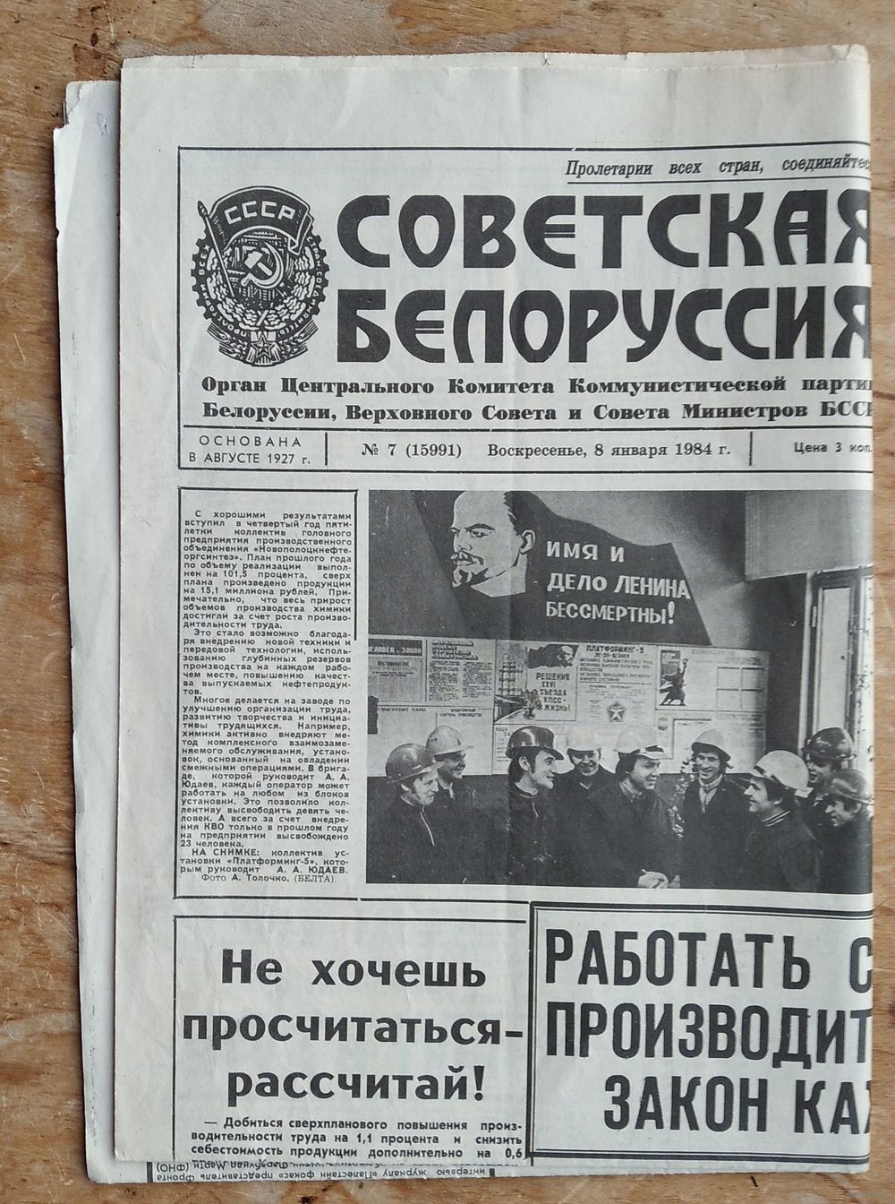 Газета " Советская Белоруссия " 8 января 1984 г.