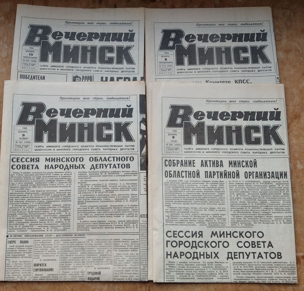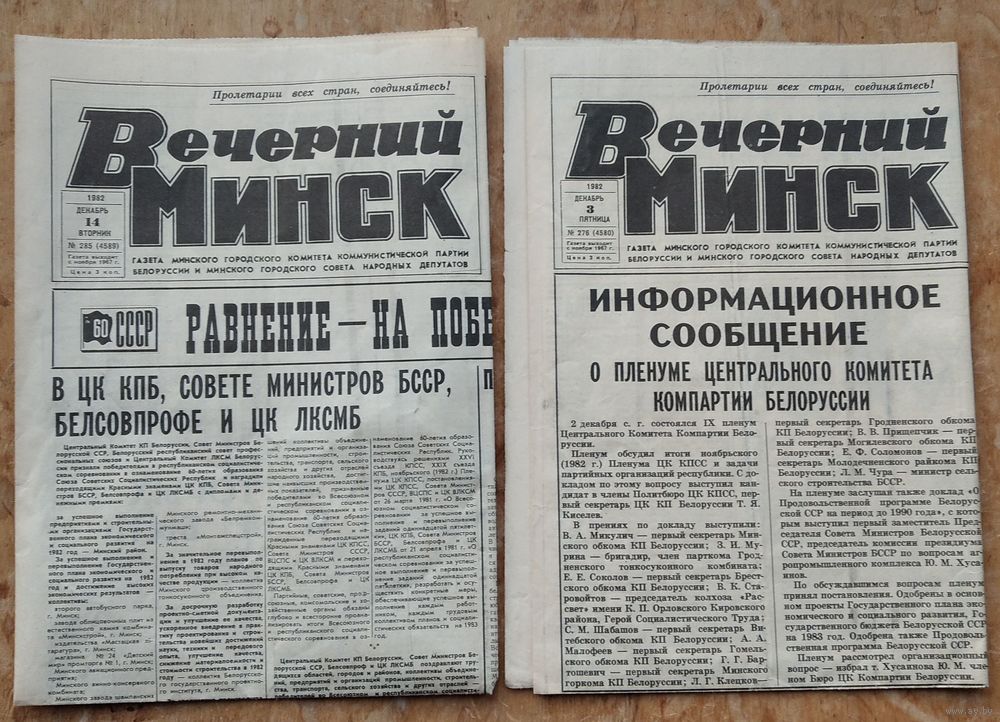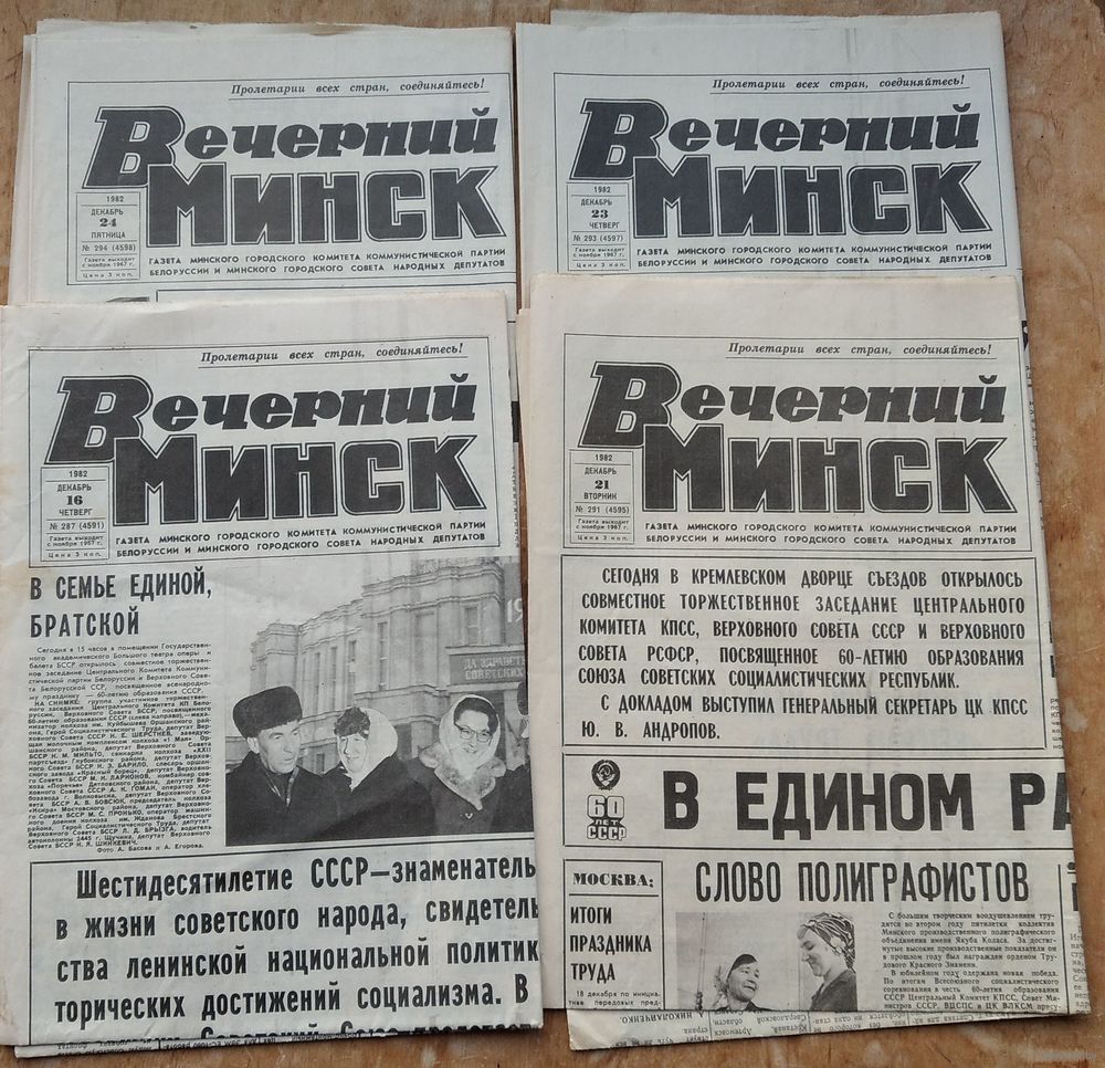 Газета " Вечерний Минск ". 3, 6, 8, 9, 13, 14, 16, 21, 23, 24 декабря 1980 г. 10 шт. Цена за 1 шт.