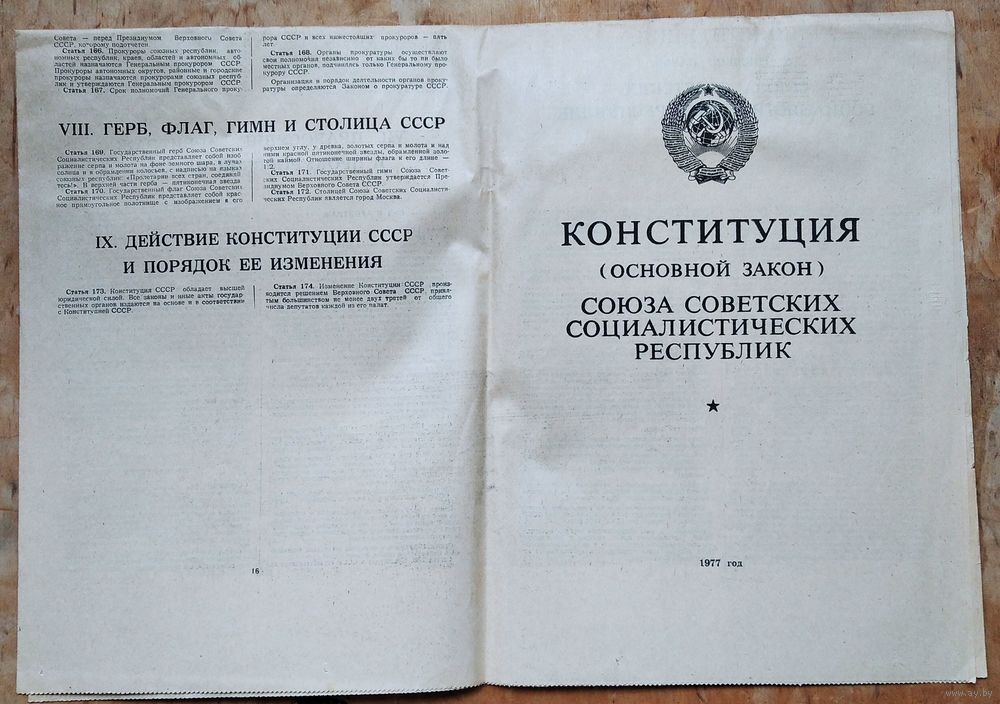 Газета Вечерний Минск. 8 октября 1977 г. Вкладыш - Конституция СССР.