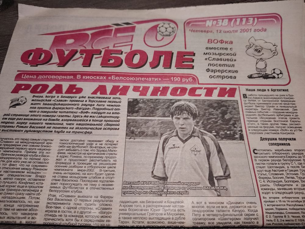 Газета "Все о Футболе" (г.Минск) - #38-2001