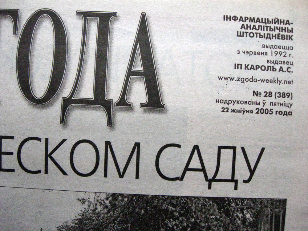 Газета Згода Номер 28 (389) 2005 С таким номером вышли две разные газеты Номер не был изменен по ошибке Номера 29 (390) не существует Сразу вышел 30 (391)