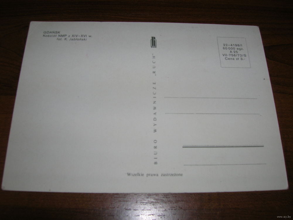 Гданьск Польша Костел 1972 год Издание RUCH чистая