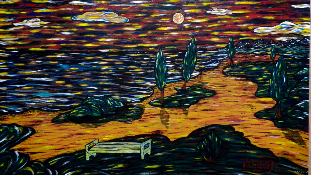 Что касается оформления.Цена стоит за работу без оформления. Если вы желаете, чтобы я сам сделал оформление, как я вижу эту картину, то это возможно. У нас в Витебске есть хорошая багетная мастерская. И раму правильную, наверное, можно подобрать, и музейное стекло найдется. Так как большинство работ выполнено недорогими красками, то лучше заплатить сейчас больше за Музейное стекло, и оставаться спокойным.