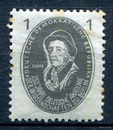 ГДР - 1950г. - Леонард Эйлер, 1 Pf - 1 марка - MNH с пятнышками на лицевой и обратной сторонах [Mi 261]. #1-GG-6-A-1