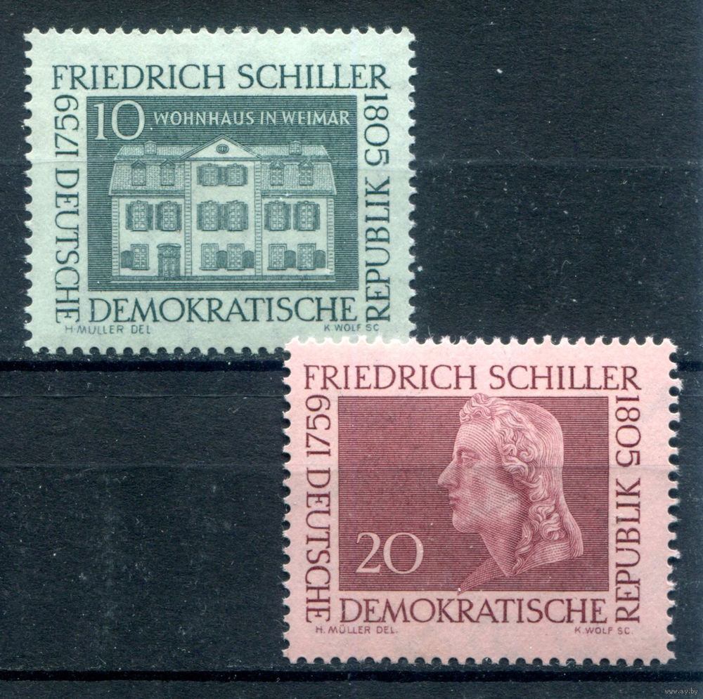 ![ГДР - 1959г. - Фридрих Шиллер, поэт. Дом писателя. - 2 марки - полная серия, MNH [Mi 733-734]. #1-GG-24-KS-2](https://s5-lot.aystatic.by/550x510/778/308/5040/5040308778_0.jpg)