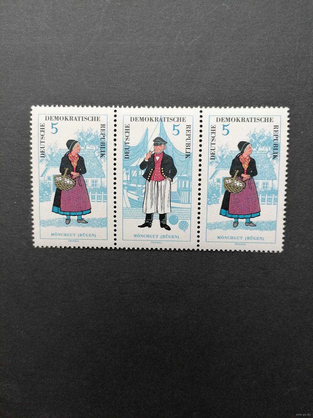 ГДР 1964 Горизонтальная сцепка из трех марок серии "Национальный костюм" (чистые**) Mi.1074-1075 каталог 24.00 евро