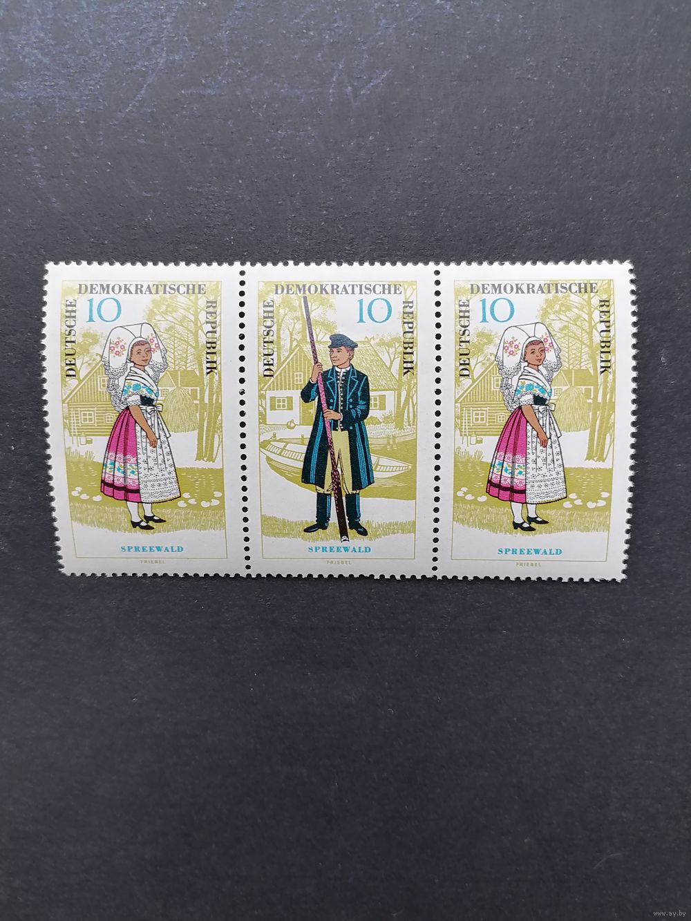 ГДР 1964 Горизонтальная сцепка из трех марок серии "Национальный костюм" (чистые**) Mi.1076-1077 каталог 7.50 евро