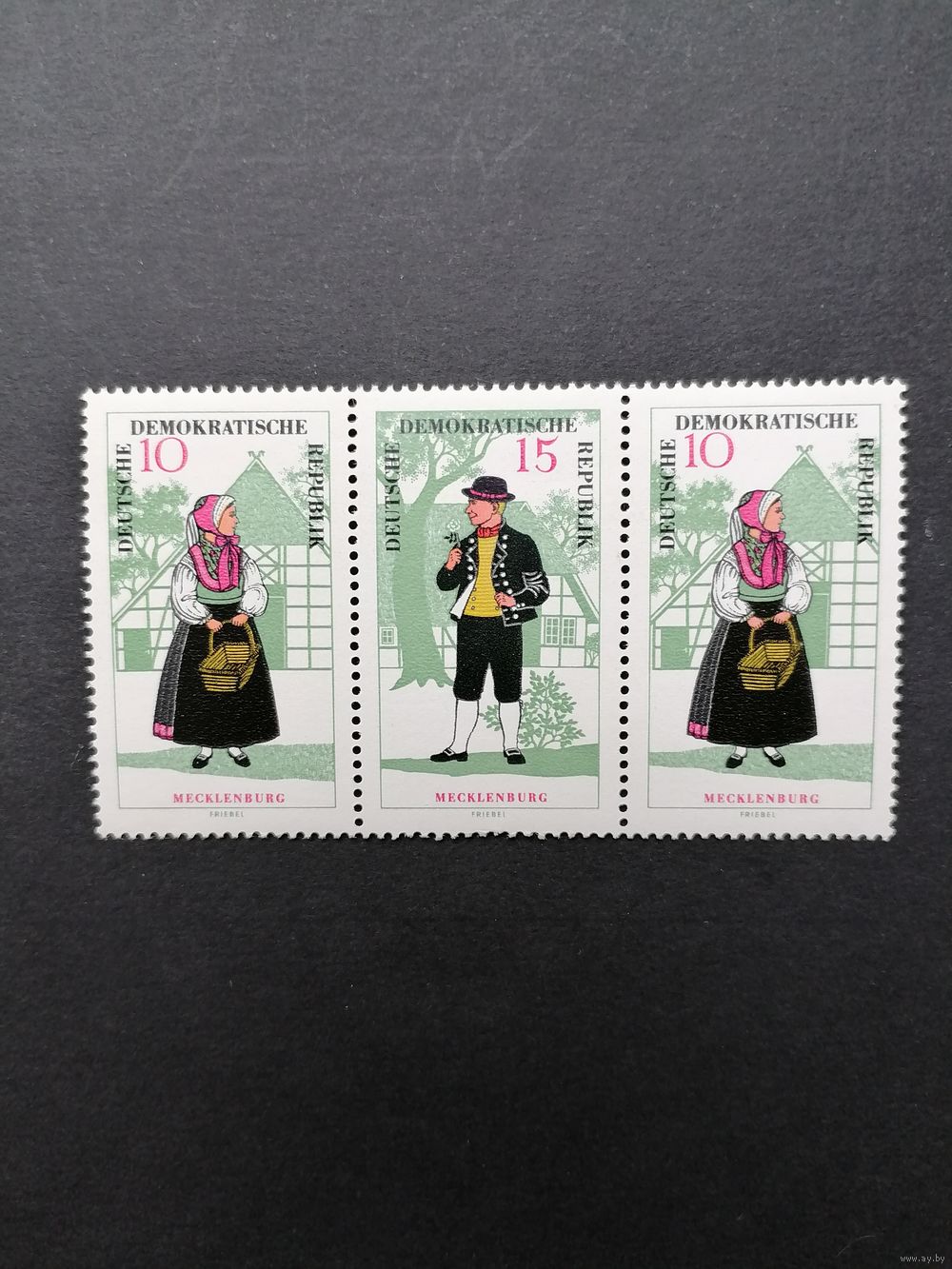 ГДР 1966 Горизонтальная сцепка из трех марок серии "Национальный костюм" (чистые**) Mi.1216-1217 каталог 1.50 евро