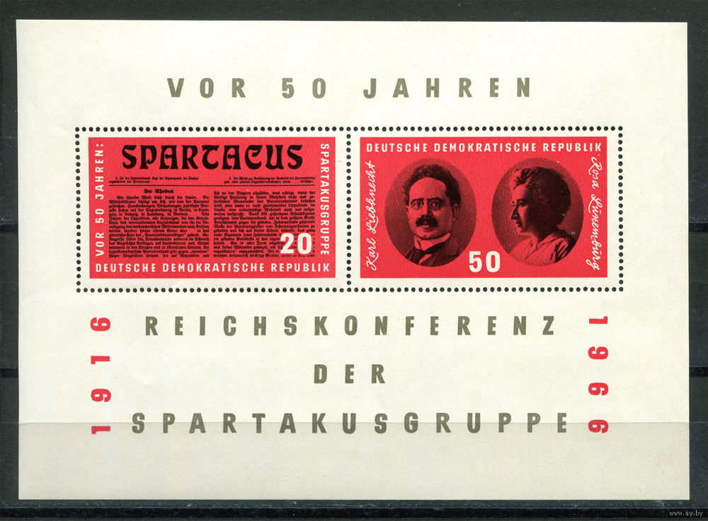 ГДР - 1966г. - Карл Либкнехт и Роза Люксембург - 1 блок - полная серия, MNH [Mi bl. 25]. #O-Se-Z-2-38