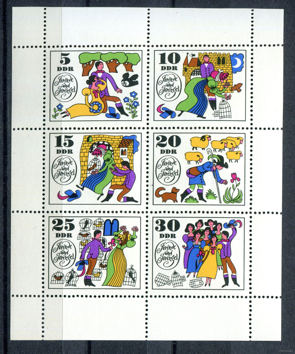 ГДР - 1969г. - Сказки. Йоринда и Йорингель - 1 малый лист - полная серия, MNH с маленьким повреждением клея [Mi 1450-1455]. #O-Se-Z-2-38