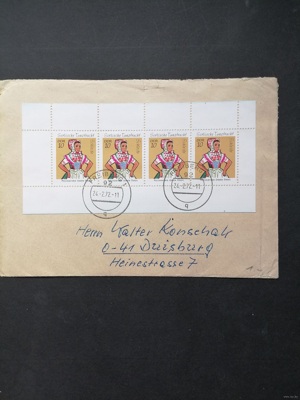 ГДР 1971 Конверт с листом марок из фирменного буклета H-Blatt Mi.12 "Лужицкие танцевальные костюмы девушек" (простое гашение) 4хMi.1723 каталог 16.00 евро