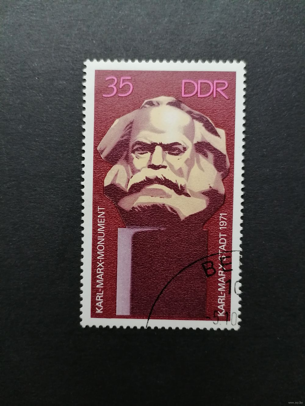 ГДР 1971 Марка "Монумент в Хемнице (Карл-Маркс-штадт), посвященный Карлу Марксу" (спецгашение с клеем) Mi.1706 каталог 0.40 евро