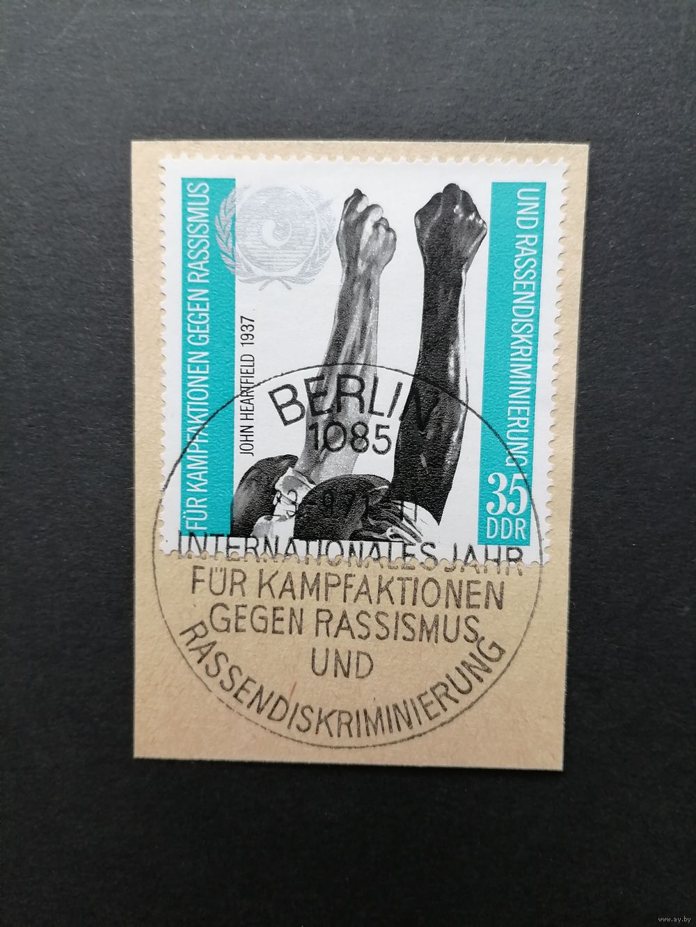 ГДР 1971 Марка на вырезке "Международный год против расизма" (спецгашение) Mi.1702 каталог 0.40 евро