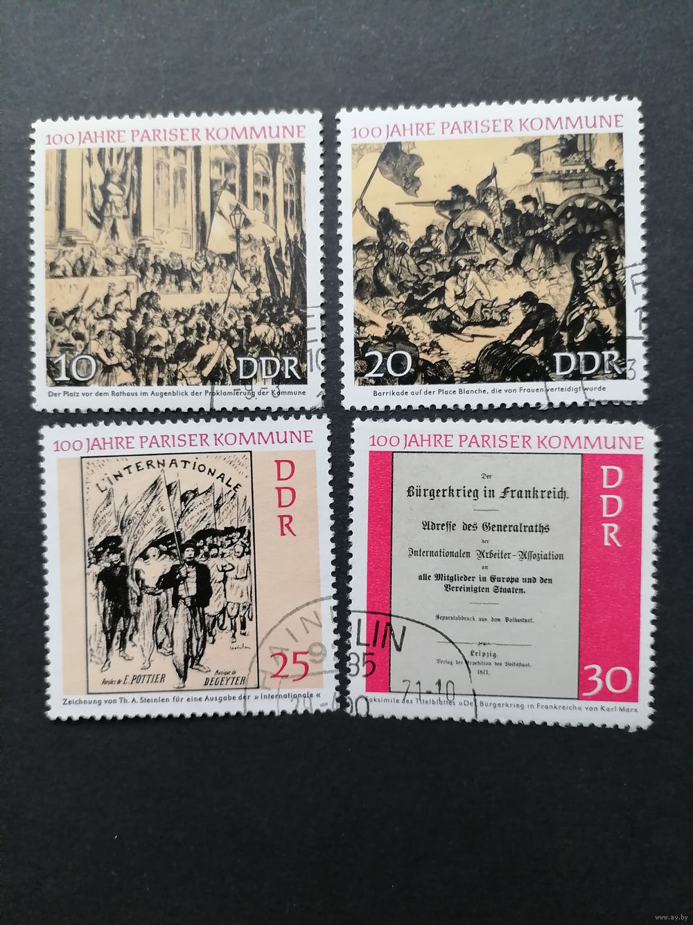ГДР 1971 Полная серия марок "100 лет Парижской коммуне" (гашение три с клеем одна марка без клея) Mi.1655-1658 каталог 2.00 евро