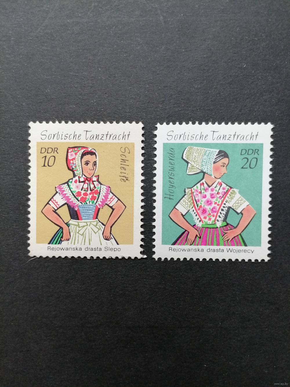 ГДР 1971 Полная серия марок "Лужицкие танцевальные костюмы девушек" (чистые**) Mi.1723-1724 каталог 1.00 евро