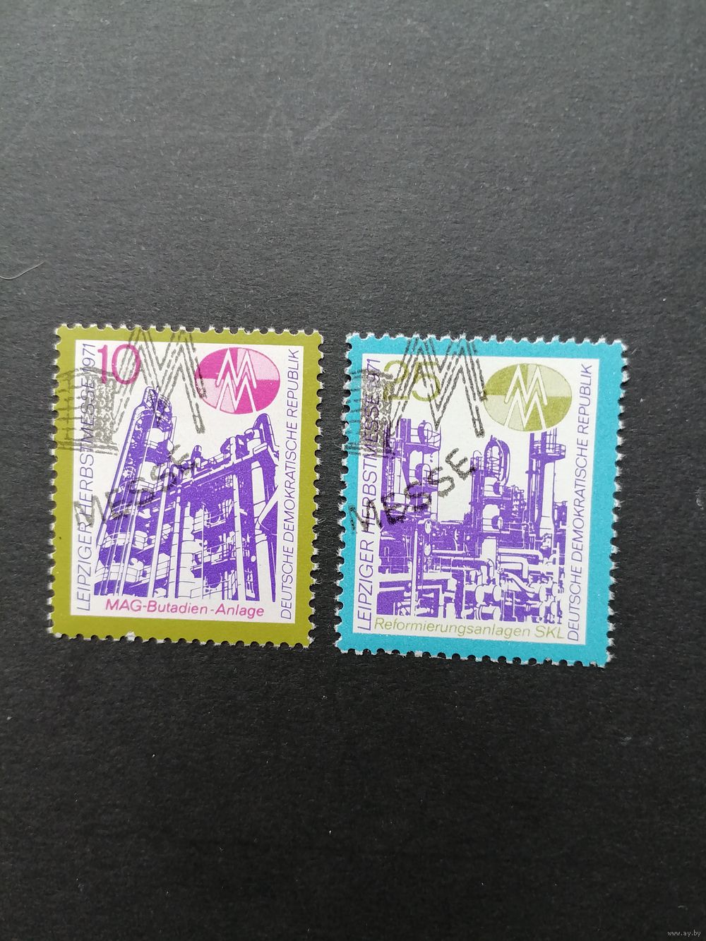 ГДР 1971 Полная серия марок "Международная осенняя торговая ярмарка в Лейпциге" (спецгашение с клеем) Mi.1700-1701 каталог 0.80 евро