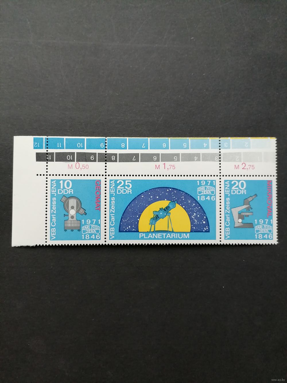 ГДР 1971 Полная серия марок на горизонтальной сцепке "125 лет предприятию Карл Цейс Йена" (чистые**) Mi.1714-1716 каталог 4.20 евро