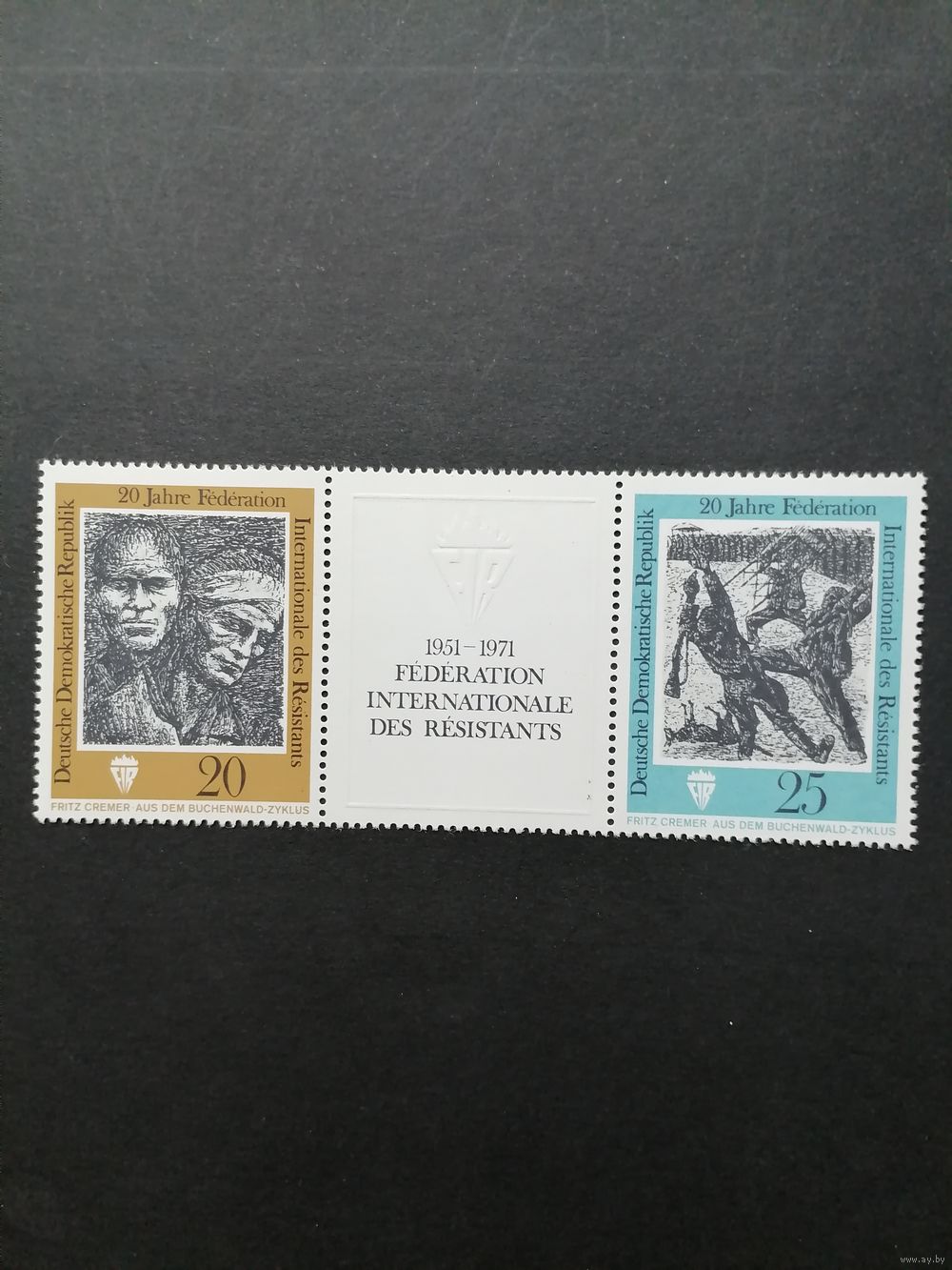 ГДР 1971 Полная серия марок на горизонтальной сцепке "20 лет Интернациональной федерации борцов сопротивления" (чистые**) Mi.1680-1681 каталог 1.80 евро