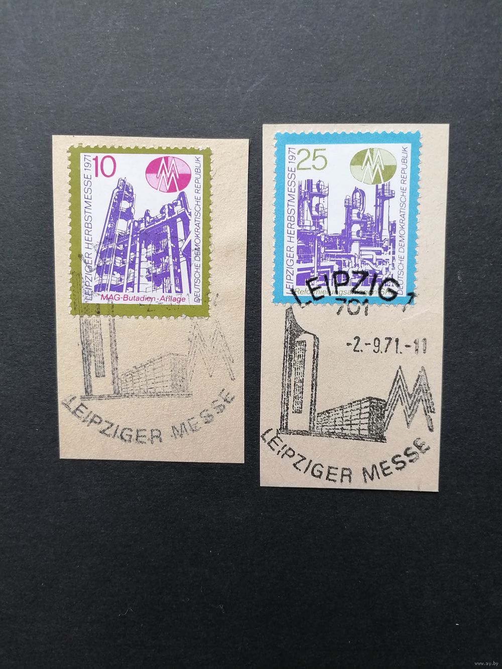 ГДР 1971 Полная серия марок на вырезках "Международная осенняя торговая ярмарка в Лейпциге" (спецгашение) Mi.1700-1701 каталог 0.80 евро