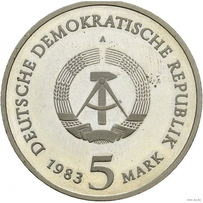 ГДР 5 марок, 1983 Родной дом Мартина Лютера в Эйслебене UNC