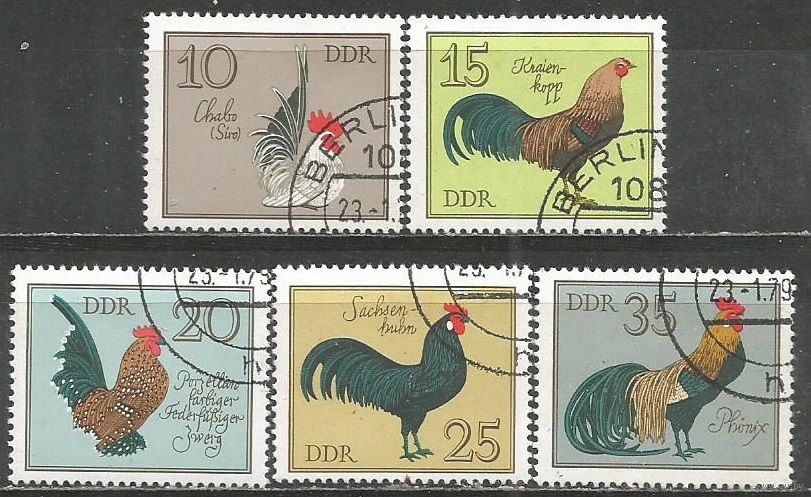 ГДР. Немецкие петухи. 1979г. Mi#2394-98.