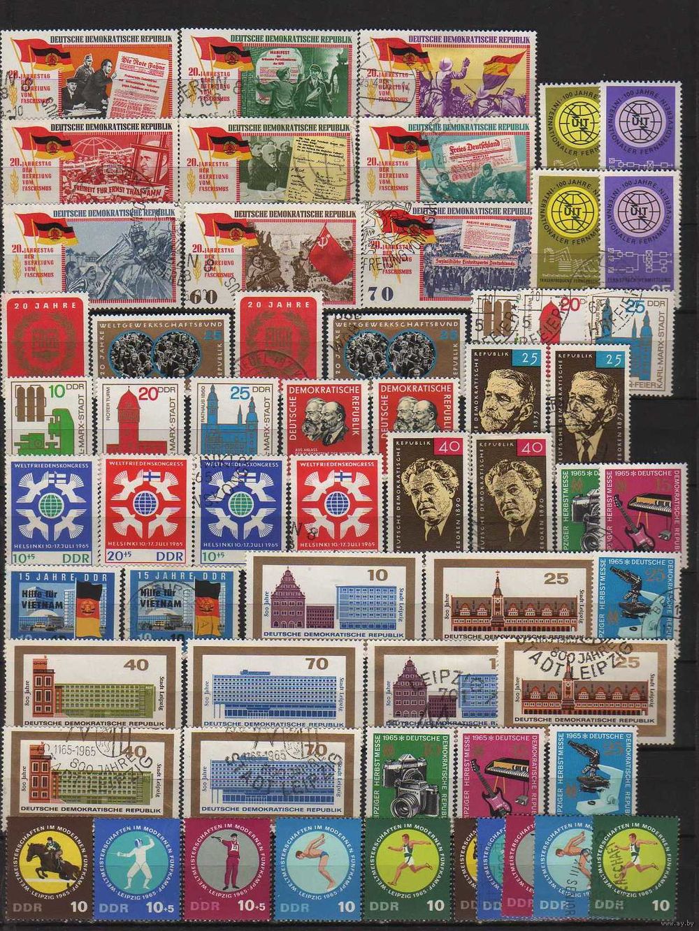 ГДР.ПОЧТИ ПОЛНЫЙ(без блоков) ГОДОВОЙ КОМПЛЕКТ ЧИСТЫХ МАРОК 1965г.(без наклеек и следов от них,с родным клеем)! Плюс добавлены некоторые гашеные серии!