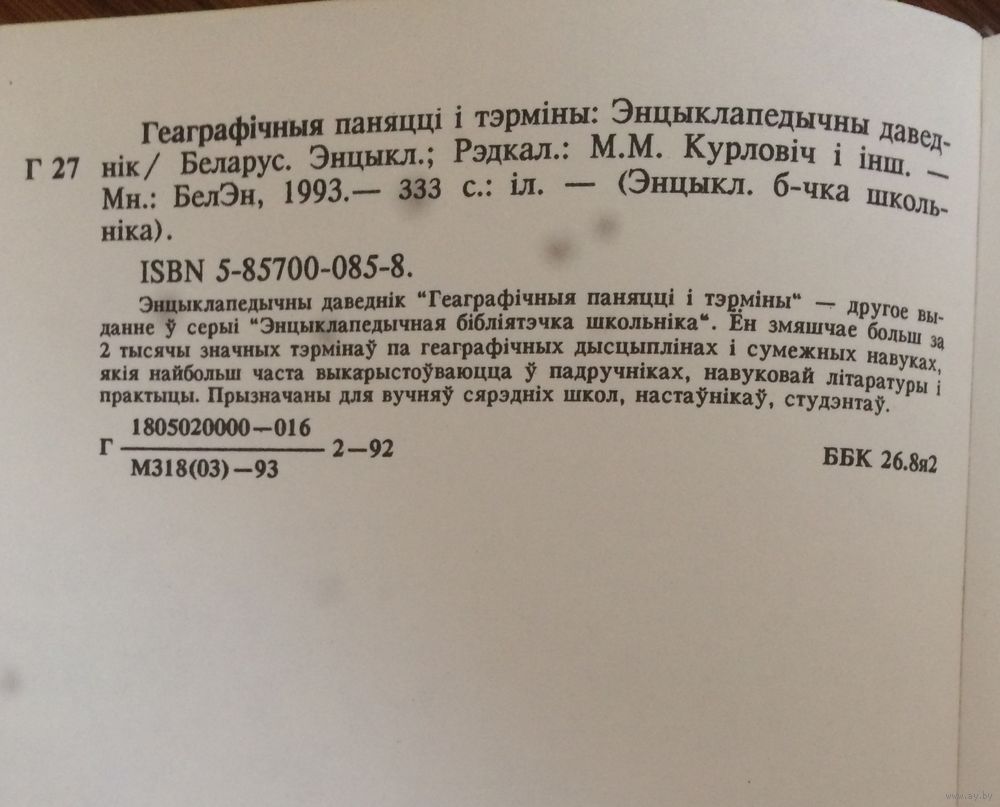Геаграфічныя паняцці і тэрміны. Энцыклапедычны даведнік. Курловіч М. М. 1993г. 333стр.
