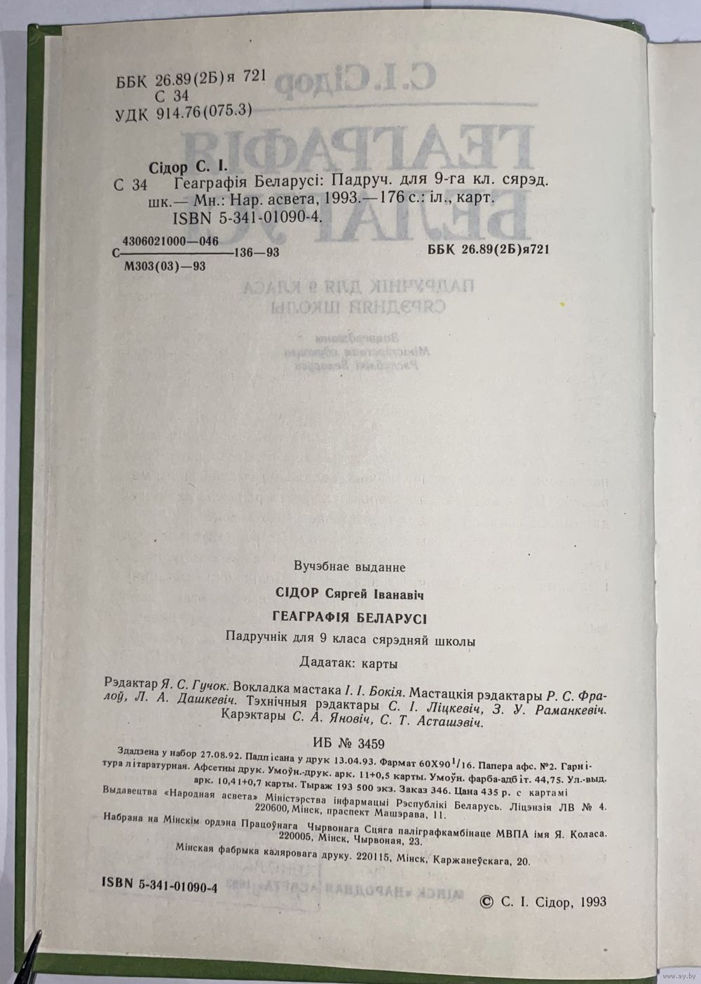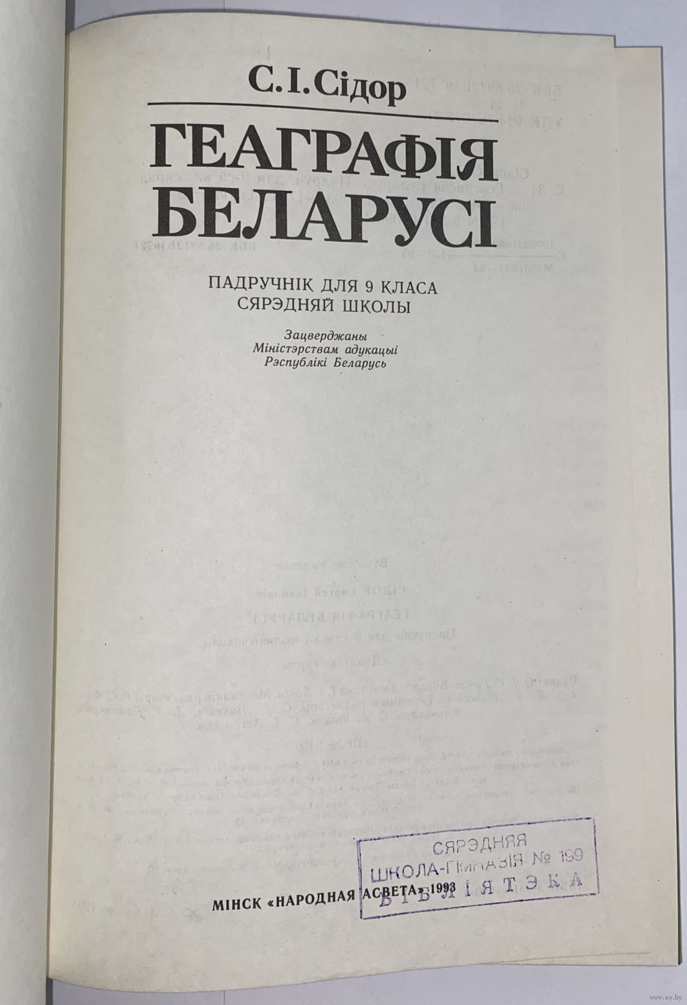 Геаграфія Беларусі. Падручнік для 9 класа сярэдняй школы. С.І. Сідор. 1993г. 176стр.